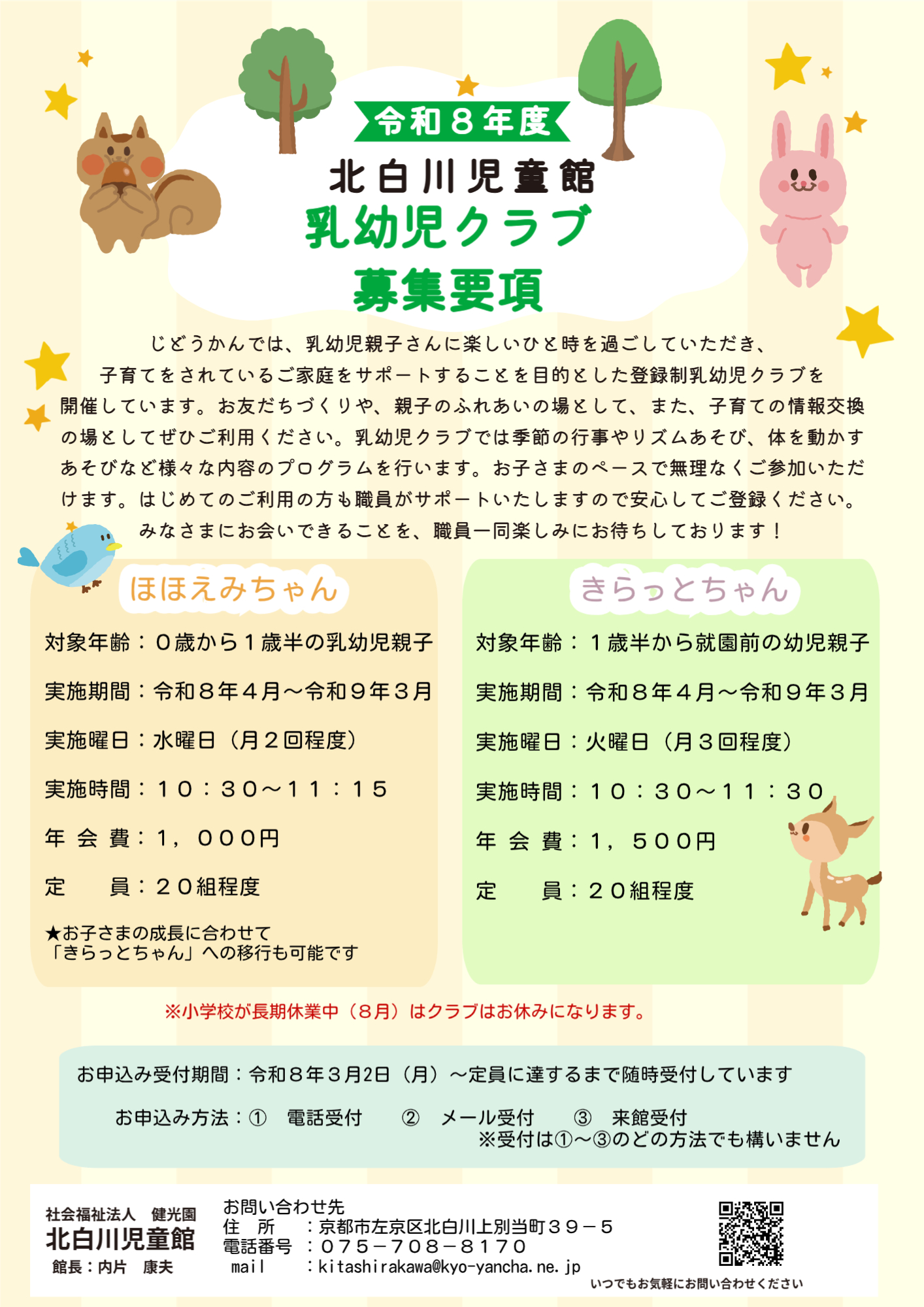 令和8年度の乳幼児クラブのメンバーを募集いたします。