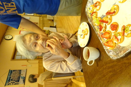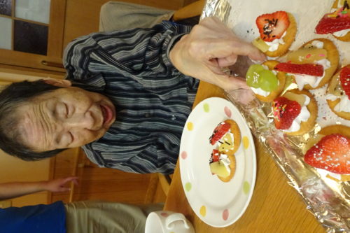 お菓子のリッツを使って、見た目にも楽しいお菓子を召し上がっていただきました。