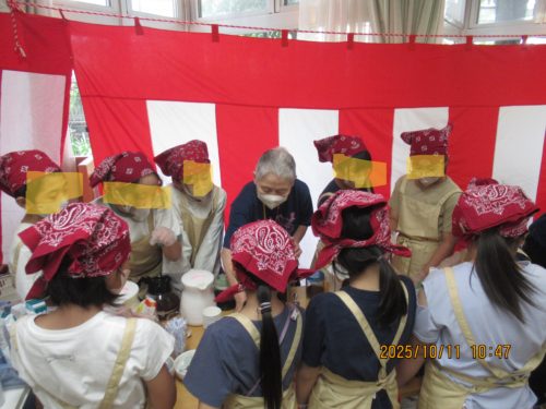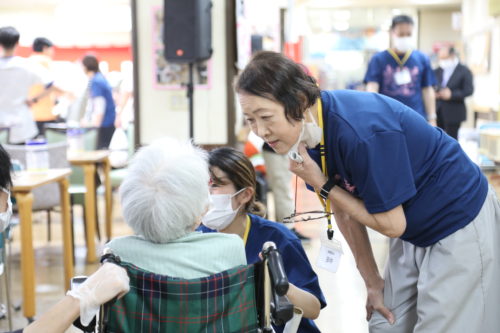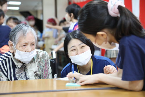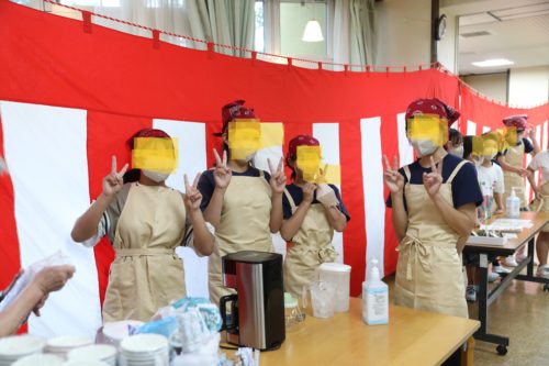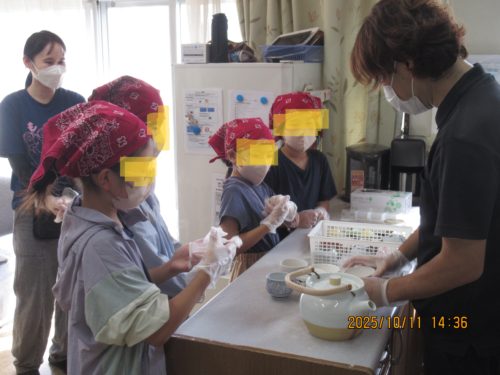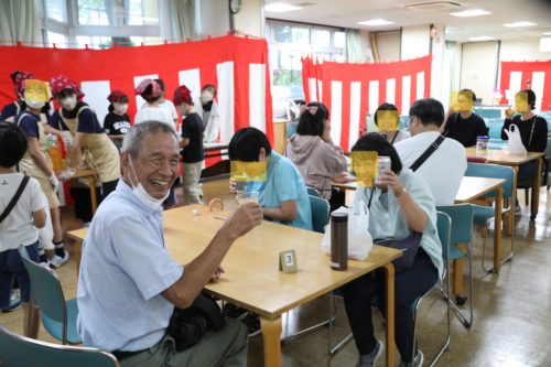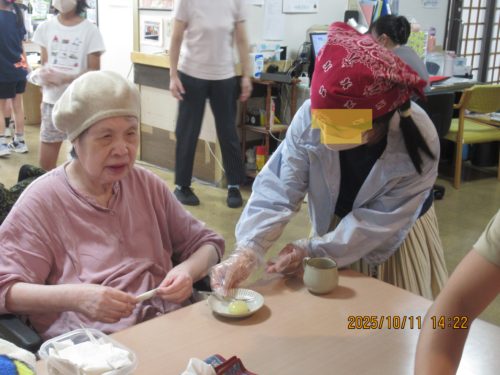 老人ホーム利用者様もお昼は祝い膳。そしておやつには子供たちが手伝いに来てくれるサプライズ