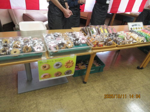 さくらさんによるキッチンカーの販売、くーぺさんのパンの販売、だいご学園さんのドーナツ(焼き菓子)お販売。どれも大人気。