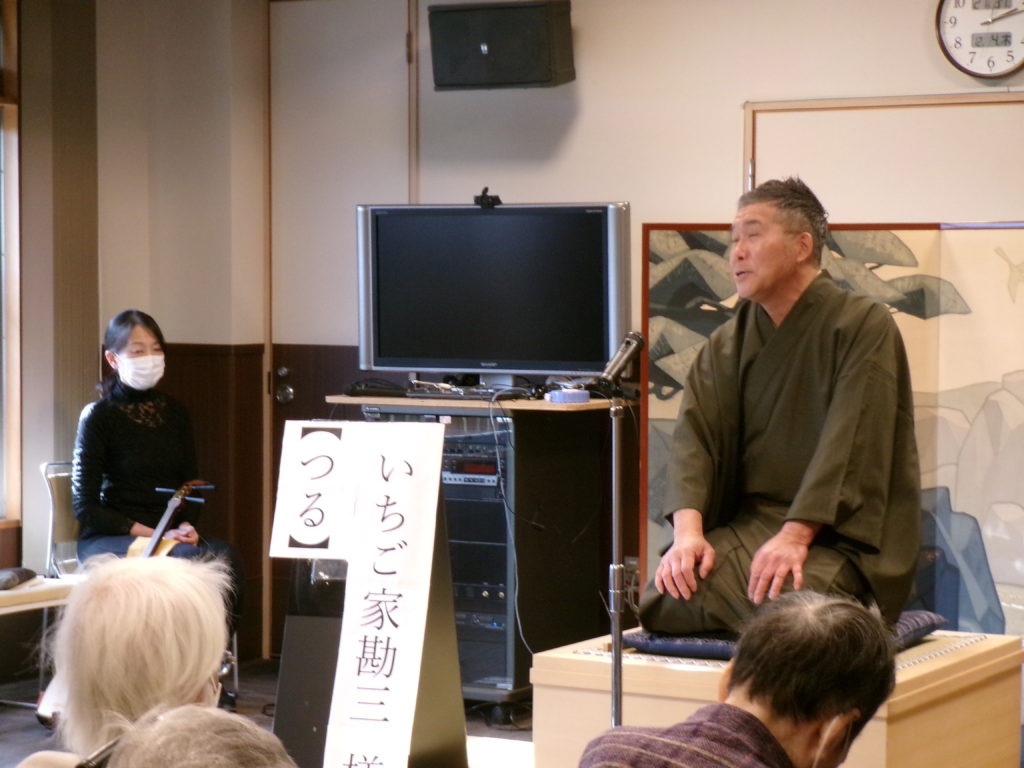 初めてのご来園 落語・いちご家勘三様 本格的な落語を楽しませていただきました。