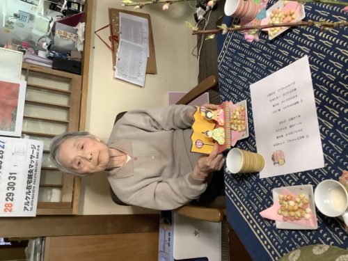 子どもの頃のお雛様の話や、職員がクイズを出したりと賑やかな時間となり、皆で春の訪れと雛祭りを祝いました。